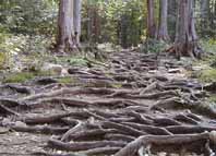 国道19号線から車で20分「赤沢自然休養林」へ足を踏み入れると爽やかな清流が迎えてくれます。澄み切った水が木曽ひのきを育て、また樹齢300年の木々が清流を育みます絶えることのない自然の 営みです・・・。 「赤沢自然休養林」・・・ 明治22年ー帝部林野局御用林 明治39年ー神宮備林設置 昭和44年ー全国初自然休養林指定 昭和57年ー森林浴大会開催(森林浴ブームのきっかけとなる) では、なぜ木曽谷に良質なひのきが育ってきたのでしょうか・・・? 答えはな・な・なんと80年だそうです・・・こんなに細いのに80歳・・・(@_@)それだけゆっくりジックリと木曽ひのきは成長するものだそうです ジックリ年輪を重ねるため、きめ細やかでクルイの少ない木曽ひのきが育っていくわけですネ 木曽谷は冬の寒さの厳しいところです山の中ではマイナス10℃〜20℃になることもしばしば、その厳しい自然がゆっくりと木曽ひのきを育てます、更にさらに険しい山々が多くの雨を降らせ永い年月をかけ大木に育てるわけです。 右の写真店主の私がどこにいるかお分かりでしょうか? セミのように抱きついた木は樹齢300年の木曽ひのきです 体を張った店主→ 樹齢300年を超える木曽ひのきの森に圧倒された感じの店主ですが・・・更にこの後信じられない衝撃の光景が我々取材班(といっても私&妻)の前に!! これが衝撃写真だっ!→→→ エッただのオヤジが森に立っているだけですって・・・(-_-メ)・・・それではもっと詳しくつまびらかに(同じことだって)下の写真をご覧下さい ↓ 通常目にすることのない根も、こんなにしっかり地中に張られているものなのです・・・大水などの災害時にもこの根があることによって、土砂崩れにならないそうです・・・ひのきパワーは見えないところで大地と繋がり支えているのですネ・・・すっすごいっ!(*_*) |