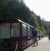 ひのきには殺菌・空気の浄化などのすぐれた効果がありますまた、クルイが少なく木の肌が細やかで美しいことから木の王様とよばれ漆器や木工品に、高級な一級素材として古くから使われてきました 「森林鉄道」 木曽ひのきなどの森林資源を運ぶために、実際に大正5年〜昭和50年まで使われていた森林鉄道です・・・現在は観光用に2kmほどの距離を運行しています 木曽ひのき樹皮 赤みがかった厚い樹皮が木肌を守ります・・・側に近づくといい香りが |