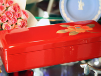漆器のジュエリーボックス、フタを開けるとオルゴールの音楽に癒されます さざんかのシンプルで人気があります 11000円(税込) オルゴールの音楽はお選びいただくことができません